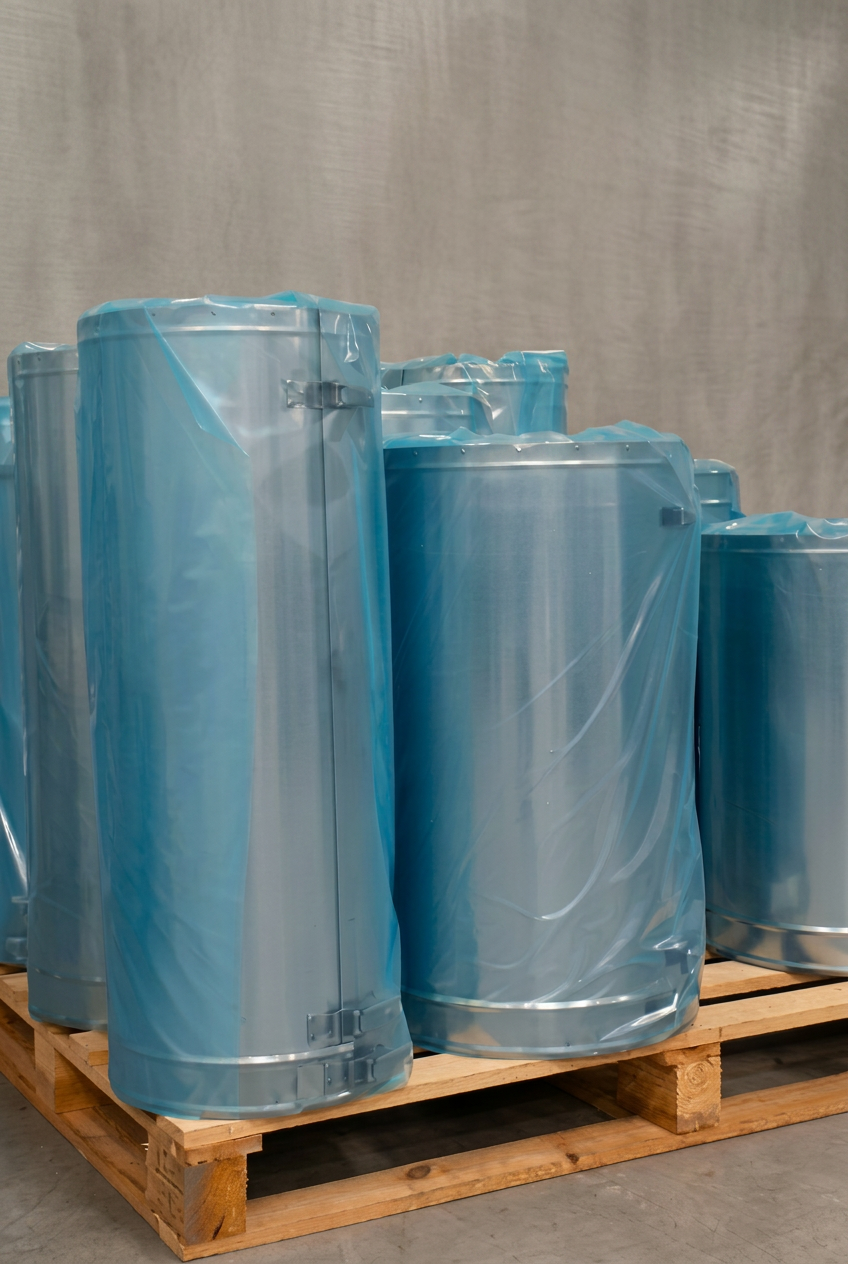 Protection anticorrosion d’équipements calorifuges lors de l’expédition vers une centrale nucléaire française. Produit utilisé: film VCI PMUC NuCorr.